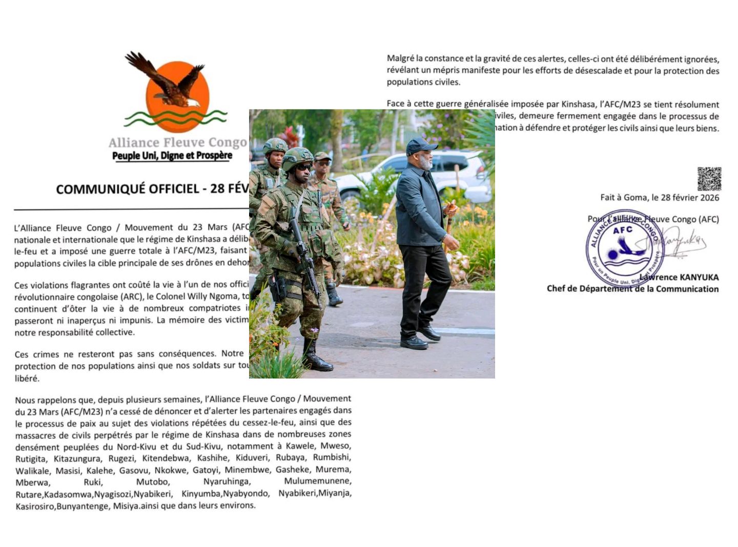Signalons qu'à ce stade, les attaques de drones et les frappes évoquées dans le communiqué n’ont fait l’objet d’aucune revendication ni confirmation officielle de la part de Kinshasa.